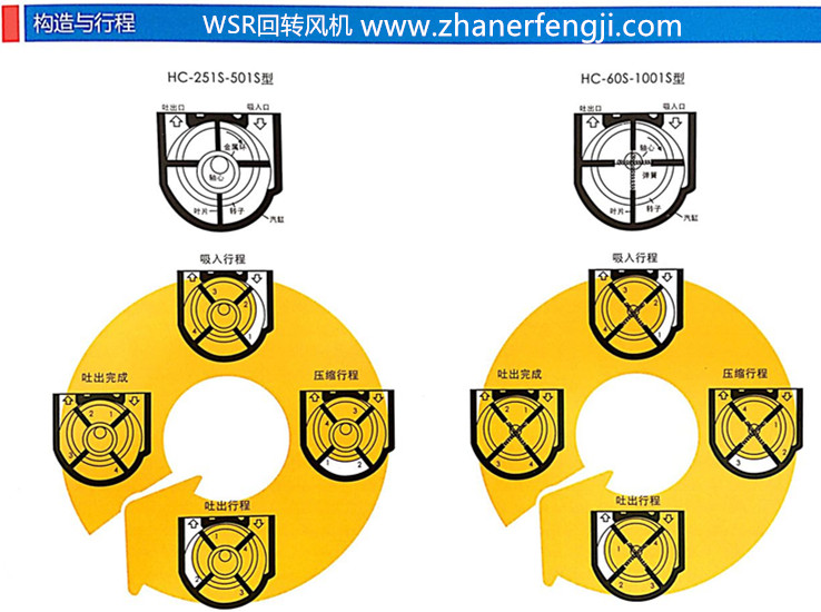 | 回轉(zhuǎn)風(fēng)機(jī)的構(gòu)造與行程 | ||